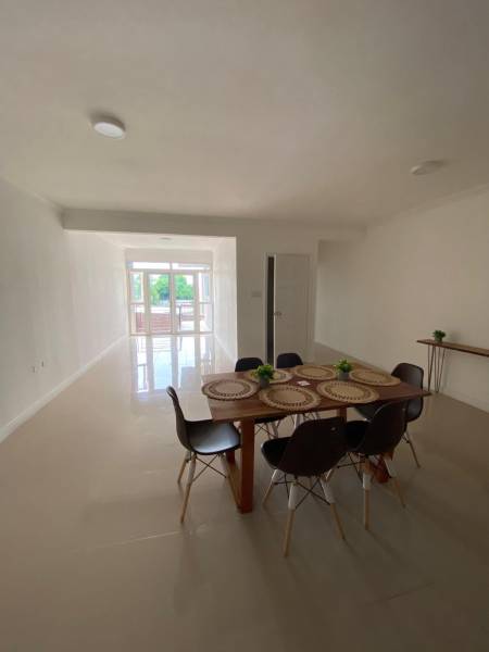 This 3 bedrooms, 3 bathrooms unit is very spacious and comes with bathrooms en suite, as well as a powder room. The master bedroom comes with large his/hers closets. All rooms are equipped with A/C. The building is equipped with elevator, but the apt is on the 1st floor and is an easily accessible by stairs. There is a spacious rooftop entertainment area with swimming pool, and unobstructed 360 degrees view of the city and the mountains. Please call/message to arrange viewing.