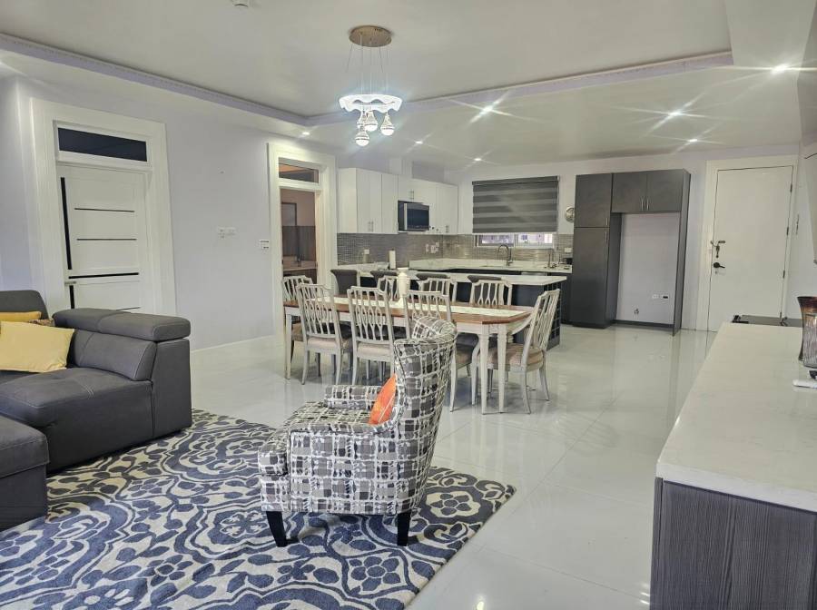 Experience the epitome of urban living in this exquisitely furnished apartment located in the desirable Kingston 6 area. In a complex of only ten apartments, this spacious two-bedroom, two-bathroom unit offers the perfect blend of style, comfort, and convenience, complimented by high-end finishes and stylish decor. Each floor houses only two units, with no section joining the other. Enjoy refreshing dips and sun-kissed afternoons by the roof-top pool and entertainment area which offers panoramic city views. Enhanced comfort is at your finger-tips with air conditioning units, backup electricity and water, in-unit laundry area, outside wash tub, balconies on three sides, underground parking, and an elevator. Are you a plant lover? There is a place for your precious babies too! If you are a professional seeking a stylish and convenient urban lifestyle; a couple looking for a romantic and relaxing retreat in the city or a corporate entity looking for suitable accommodations for your staff members, this may be just what you have been seeking. Don't miss out on this incredible opportunity! Contact your realtor today to schedule a viewing and make this luxurious apartment your home.