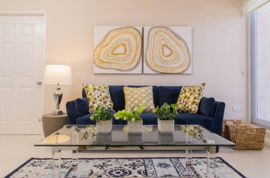 This elegantly furnished end-unit at the Hampshire is centrally located in the midst of New Kingston. It comes with with all stainless steel kitchen appliances including dishwasher. The complex features amenities such as elevators, rooftop terrace with swimming pool, bar and gymnasium, reserve water, covered parking, concierge desk and 24 hours security. This unit has 2-car parking and is connected to the generator.