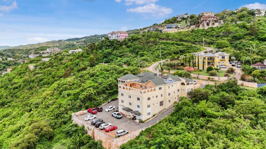 This is an apartment with a difference. With everything on one level, this senior-friendly apartment spans over 5000 sq ft with 4 Bedrooms and 4 Bathrooms as well as an additional self-contained one-bedroom flat on a lower level, that is perfect as an income earner or accommodation for live-in staff. This apartment offers an incredible opportunity for the returning resident looking for a serene setting with views of the city. Although part of a complex, it feels like a standalone home. The double-vaulted ceilings and open-concept layout offer an expansive feel, with generously sized bedrooms a large terrace and carport. This apartment is situated in the quiet, hilltop neighborhood of Golden Acres in Red Hills. Built by the developer of the apartment complex, this is the jewel of the building a bespoke space that you won't find anywhere else. It has penthouse views, yet a homely feel making it perfect for dining and entertaining. If you're searching for a property in Kingston & St. Andrew that stands out from the ordinary, this is a must-see. Unique, exceptional, and anything but run of the mill.