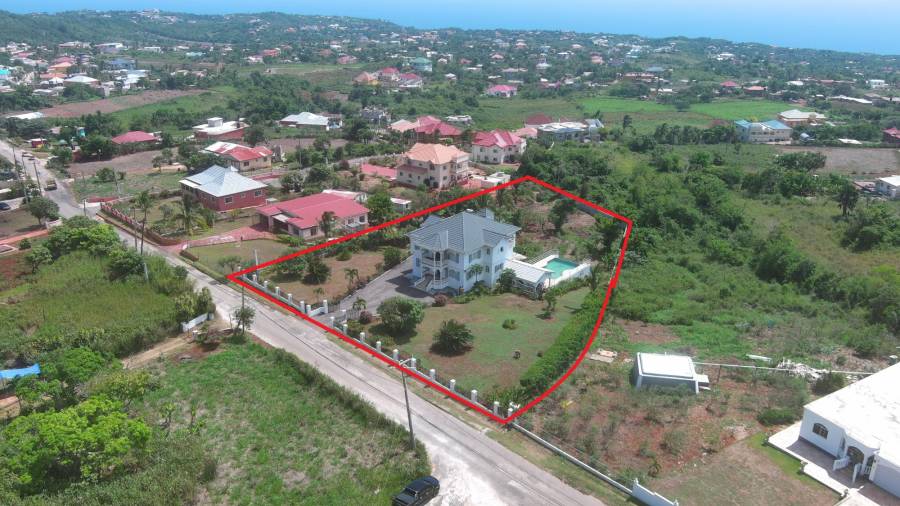 Situated in the most elevated and coolest part of Jamaica's breadbasket parish, this spacious split-level home sits on approximately one acre and enjoys refreshing breezes and stunning sea views. It is just 5 minutes from Munro College and near to Lovers' Leap, Junction, and the vibrant coastal haven of Treasure Beach. The ground floor features a welcoming foyer, a long hallway with a large glass window overlooking the backyard, an en-suite bedroom, kitchen, dining room, and living room. Upstairs, three en-suite bedrooms with hardwood floors open onto front and rear balconies that showcase the coastal panorama. A cozy den doubles as a home office, and a generous landing adds to the sense of space. The lower level includes a garage, laundry room, bathroom, storeroom, and a flexible area that can serve as a bedroom or games room. A patio leads to a swimming pool, perfect for relaxation and entertaining. Outside, the backyard offers a separate storage building and fruit trees, while the front yard features a spacious driveway, lawns, gardens, and more fruit trees making this home ideal as a private retreat or resort-style rental.