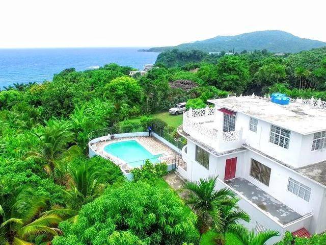 If natural beauty and tranquility is what you are seeking, look no more. Valentine View is a delightful cottage set on a one acre lot with an outstanding view of the sea and surrounding countryside. The area is a tropical paradise of fruit trees and flowing shrubs and the gentle sound of the sea takes your mind to a gentle stress-free lifestyle. Ideal for a guest house or villa operation, you could not be blamed for wanting to keep this quiet romantic retreat entirely to yourself. Set just outside the rural township of Port Maria where all the usual activities are to be found, here you have the best of both worlds. Designed for outdoor living, four of the five bedrooms open unto private balconies/patios, and there is a spacious roof deck. Walking distance to the sea, a private concrete in-ground swimming pool is an added bonus. Modernize it or keep it just the way it is, either way you will totally enjoy this idyllic location that takes your breath away. Come and see for yourself.