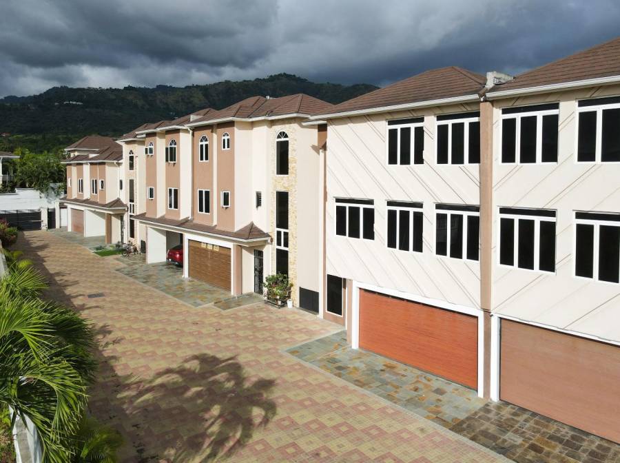 Welcome to the exclusive gated compound of 'Laterasse' on Dillsbury Avenue, Kingston 6. This unit is a Townhouse that carries three (3) levels of approximately 4,650 square feet and consist of the following: Ground level: a large kitchen, living/dining area, powder room, laundry room and two (2) car garage. First floor: 3 bedrooms each with ensuite bathrooms with the master suite and walk-in closet, and a lining closet; Second floor: one Large bedroom with ensuite bathroom and walk-in closet. The basement has a self contained one bedroom with bathroom and living area, walk in closet, office or storage space with separate entrance and exit from main. This space is ideal for an helper's quarter or income earning rental flat. The roof top boost a large entertainment area with views of the mountains. Call for an appointment today!