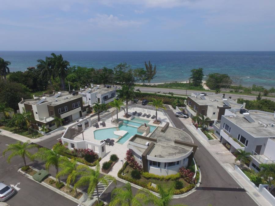 Three bedroom three bathroom split level townhouse beautifully designed with single car garage located in in the beautiful community of Miramar, Spring Garden with sea and mountain views. The master bedroom which is one of two very large bedrooms with ensuite bathrooms and individual balconies with a view of the sea. The third bedroom is located downstairs where the living and dining room provides an open concept and captivates a full view from the entrance to the kitchen. Each room consist of recess lighting and ceiling fans along with large sliding windows that provides natural light and air throughout . There is also a view of the pool which is the centrally located and is the highlight of the community. It consist of two levels with large deck space for lounging and entertainment. This property is very modern and is perfect investment for both short and long term residence as it encompasses resort lifestyle with it's tranquil views and modern touches.