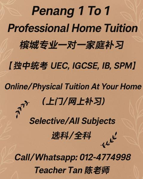 #IGCSE #UEC #Tuition #SPM #IB #统考 #补习 #一对一 #网上 #上门 #家庭 #1to1 #onetoone #1对1 #edexcel #online #penang #槟城 #InternationalBaccalaureate